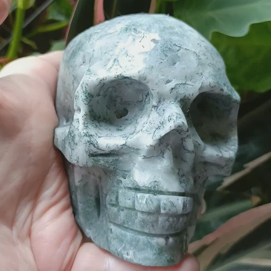 Moss Agate Skull Carving - 892g